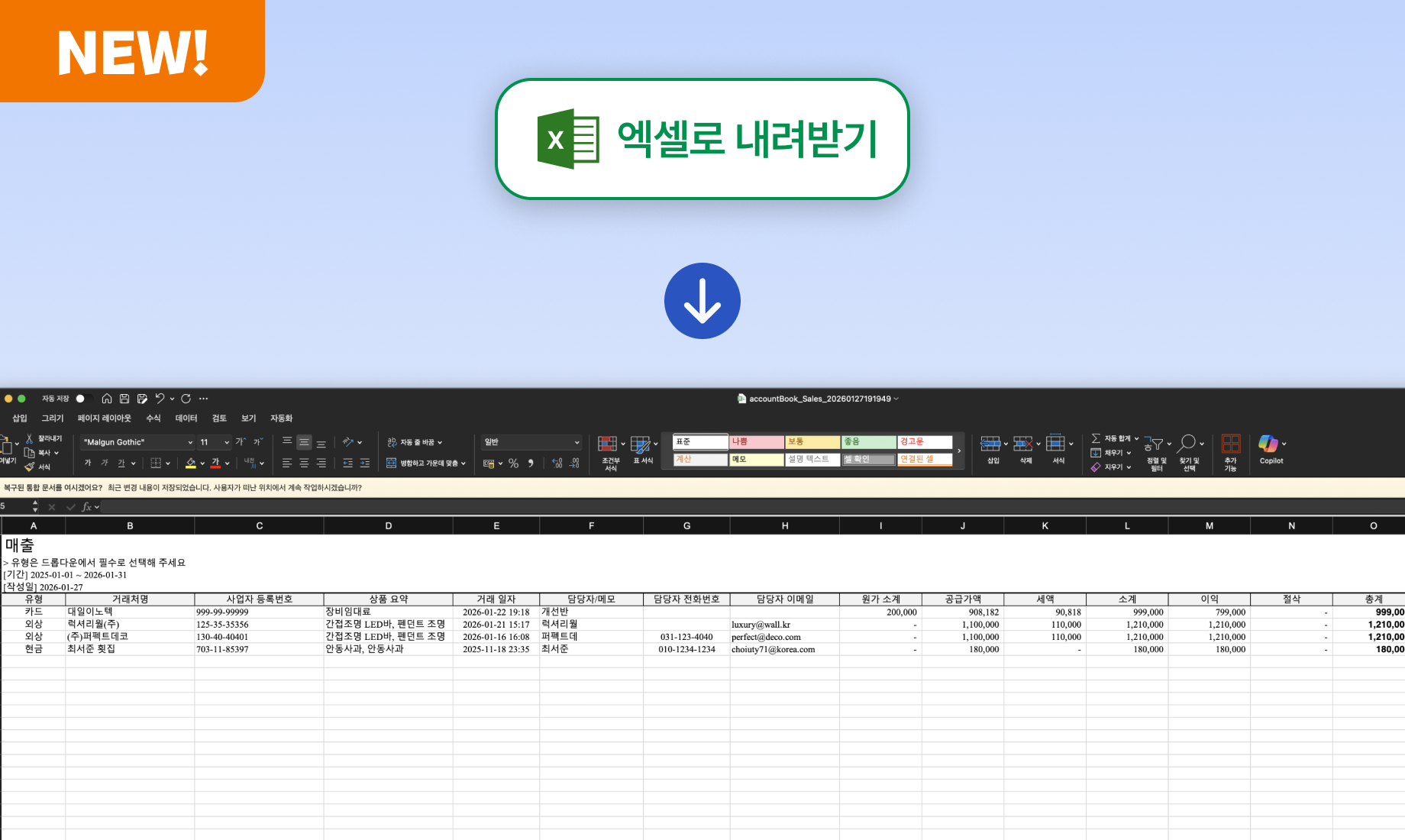 💡 팁: 내려받은 엑셀 파일을 세무사에게 그대로 전달하면, 별도 정리 없이 바로 세무 처리가 가능합니다.