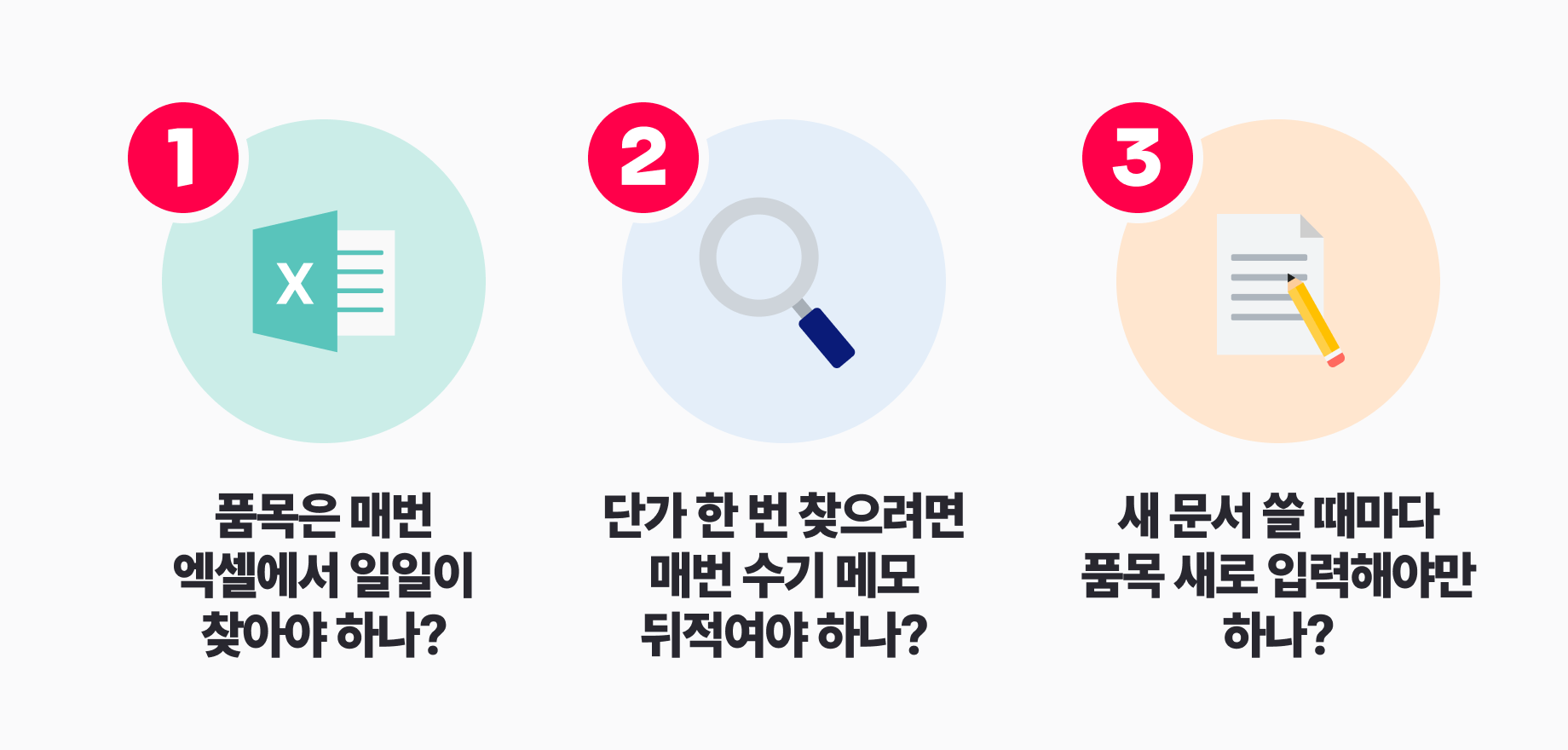 3. 문서마다 품목을 새로 입력해야 하는 번거로움